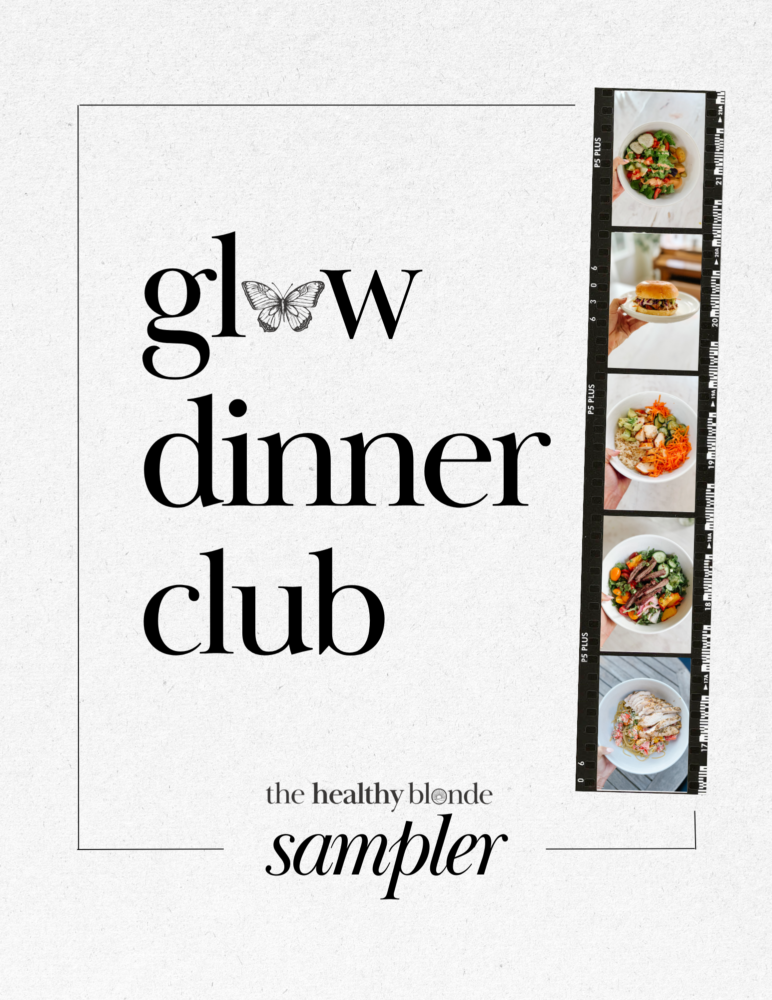 ✅ Glow Dinner Club Sampler — 5 macro-balanced, clean recipes + grocery lists to help you put your plan into action.